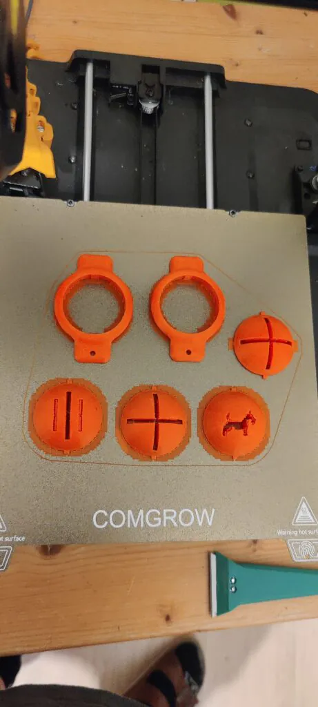 U tiskárny Ender 3 V3 SE je ladění roviny tiskové podložky úplná tragédie. Jediná možnost byla vytisknout si malé podložky, desku rozebrat a zkusit test.