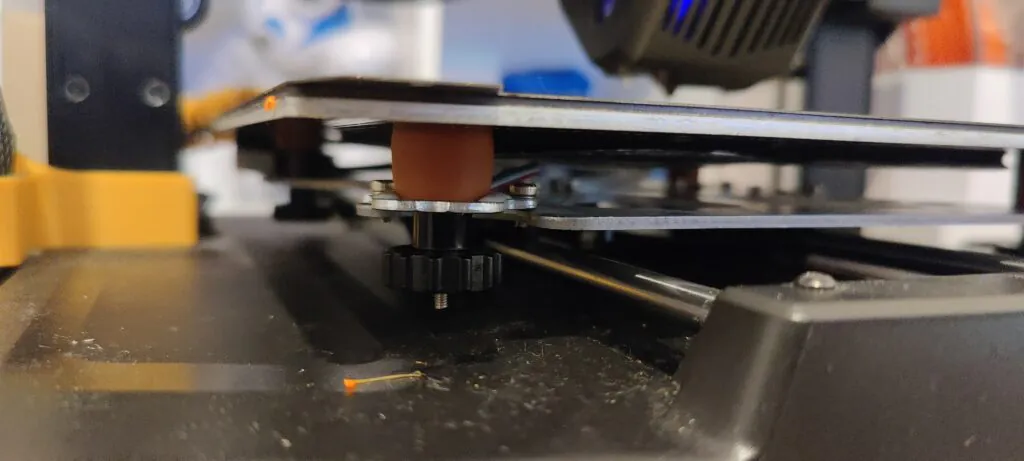 U tiskárny Ender 3 V3 SE je ladění roviny tiskové podložky úplná tragédie. Jediná možnost byla vytisknout si malé podložky, desku rozebrat a zkusit test.